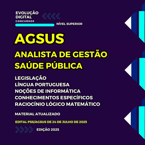 Nossa apostila para o concurso AGSUS - ANALISTA DE GESTÃO - SAÚDE PÚBLICA - NÍVEL SUPERIOR foi desenvolvida pensando em fazer o seu tempo e esforço valerem a pena.