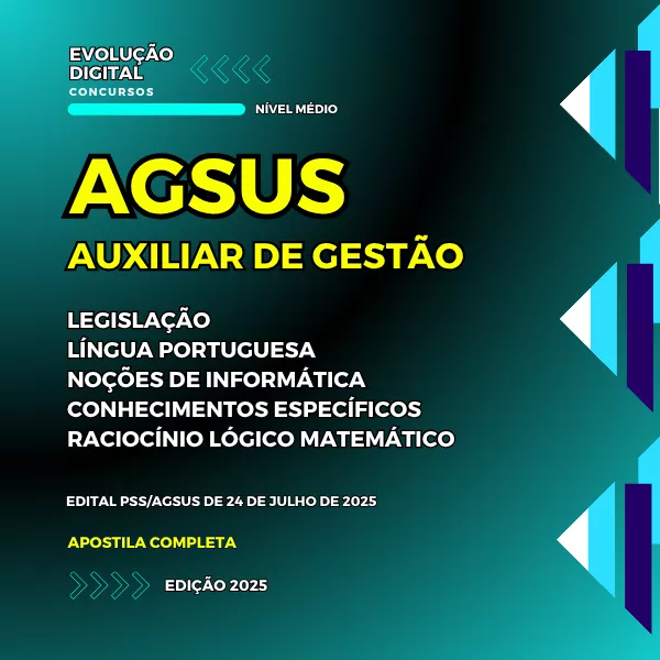 Nossa apostila para o concurso AGSUS - AUXILIAR DE GESTÃO - NÍVEL MÉDIO foi desenvolvida pensando em fazer o seu tempo e esforço valerem a pena.