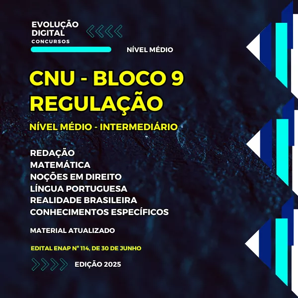 Nossa apostila para o concurso CNU - BLOCO 9 - REGULAÇÃO - NÍVEL MÉDIO -INTERMEDIÁRIO) foi desenvolvida pensando em fazer o seu tempo e esforço valerem a pena.