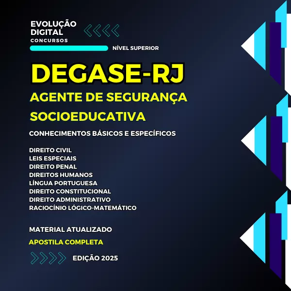 Nossa apostila para o concurso DEGASE RJ - AGENTE SOCIOEDUCATIVO - NÍVEL SUPERIOR foi desenvolvida pensando em fazer o seu tempo e esforço valerem a pena.
