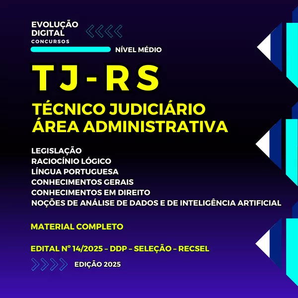 Nossa apostila para o concurso TJRS - TÉCNICO DO PODER JUDICIÁRIO - ÁREA ADMINISTRATIVA - NÍVEL MÉDIO foi desenvolvida pensando em fazer o seu tempo e esforço valerem a pena.