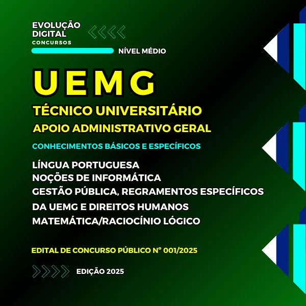 Nossa apostila para o concurso UEMG - TÉCNICO UNIVERSITÁRIO - APOIO ADMINISTRATIVO GERAL - NÍVEL MÉDIO foi desenvolvida pensando em fazer o seu tempo e esforço valerem a pena.
